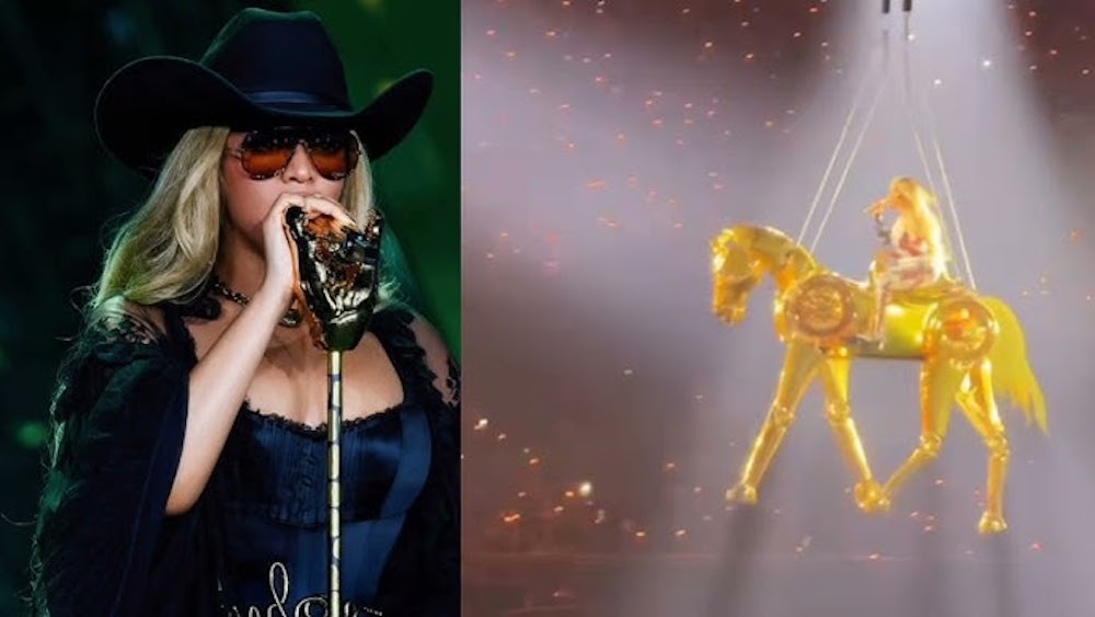 Beyoncé swapped a glitchy flying car for a dazzling golden horse during her “16 Carriages” performance in Atlanta on July 10th after a near-miss in Houston forced a change in staging.
