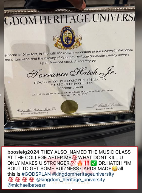Complete with a cap-and-gown ceremony onstage and fresh off a courtroom loss the day prior, the controversial rapper was awarded with honorary degrees in Music Composition and Music Management from Kingdom Heritage University. Footage from the event circulated online, showing the rapper—born Torrence Hatch—being awarded an honorary Ph.D. in Music Composition, as well as a second honorary doctorate celebrating his broader impact on the music industry. The honorary degrees mark a new milestone in Boosie’s career, recognizing not only his contributions to music but also his enduring presence and influence in the culture.