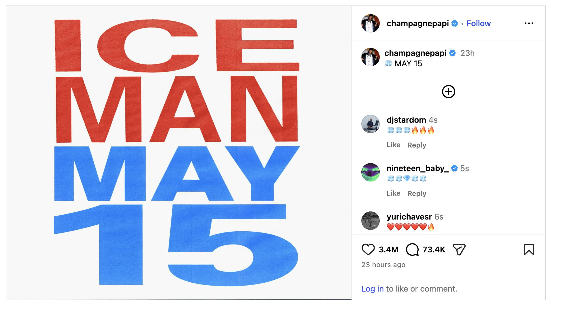 Waiting for Drake‘s official “Iceman” release date was something akin to… well, watching ice melt. On Monday, he revealed that he’d buried the album date in the middle of blocks of ice that were set up in Toronto as a promotional vehicle for the record. On Tuesday, a streamer named Kishka retrieved a bag from the ice blocks and headed to Drake’s house, where he opened the contents to reveal the date. Drake later confirmed on social media that the album was, in fact, arriving on May 15th.