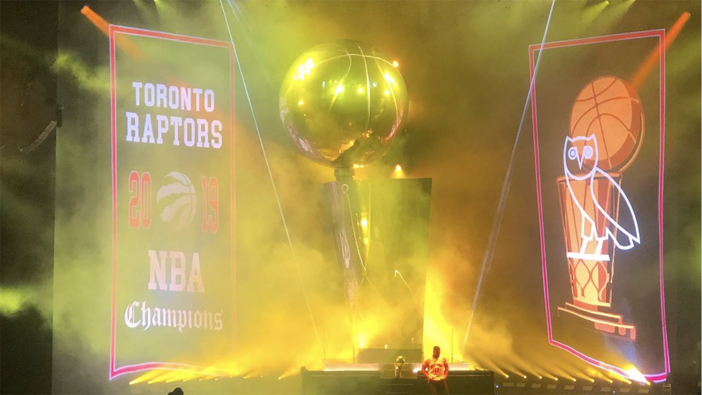 Drake is still celebrating the Raptors first-ever NBA championship win, and he brought out the Larry O’Brien championship trophy during OVO Fest.