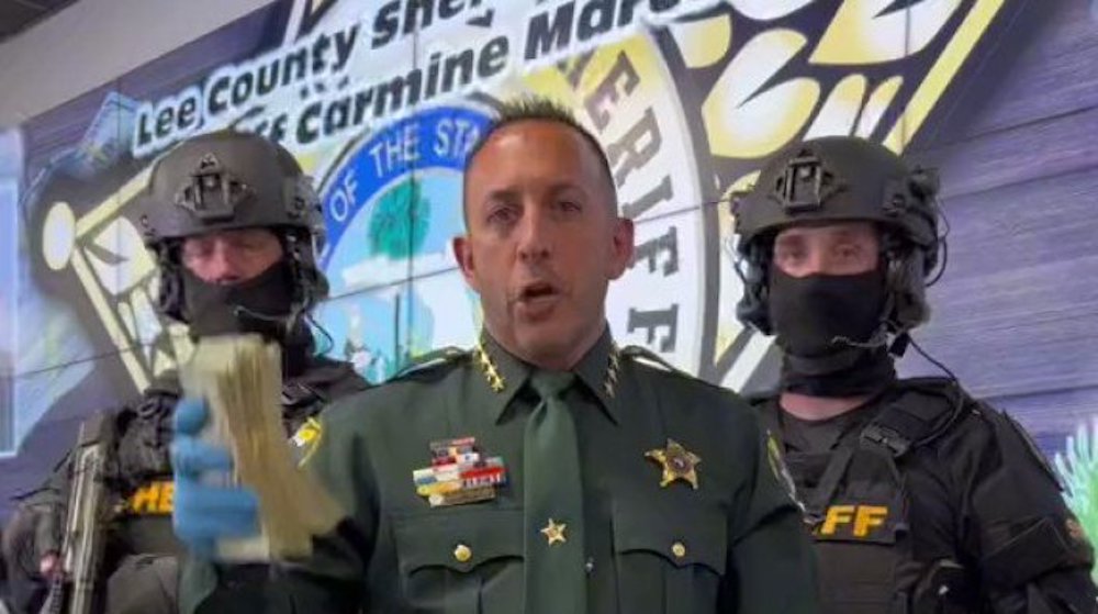“Christmas is canceled for these two drug dealers and the streets are cleared of drugs, guns and a milli,” said Lee County Sheriff Carmine Marceno before the track begins. The video then shows a montage of dirty money being counted by hand while also being ran through money counters.