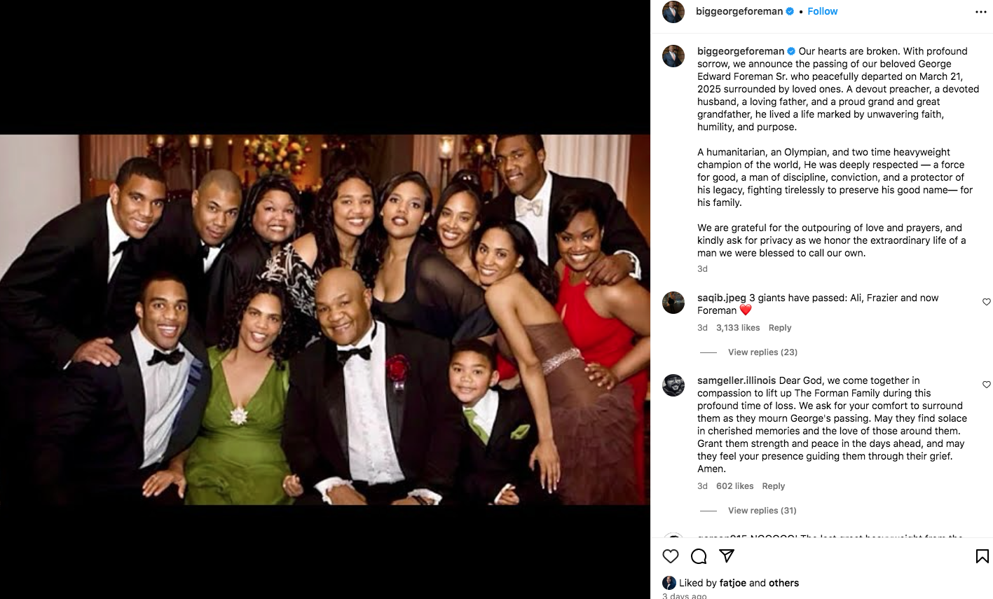 Former heavyweight boxing champion George Foreman passed away at 76 on March 21, according to his family in a new post.