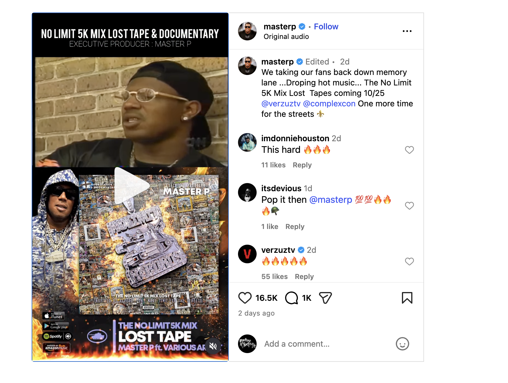 Master P emerged from musical semi-retirement to announce “The No Limit 5K Mix: Lost Tapes,” a 25-track project featuring collaborations with Lil Wayne, NBA YoungBoy, and Gucci Mane.