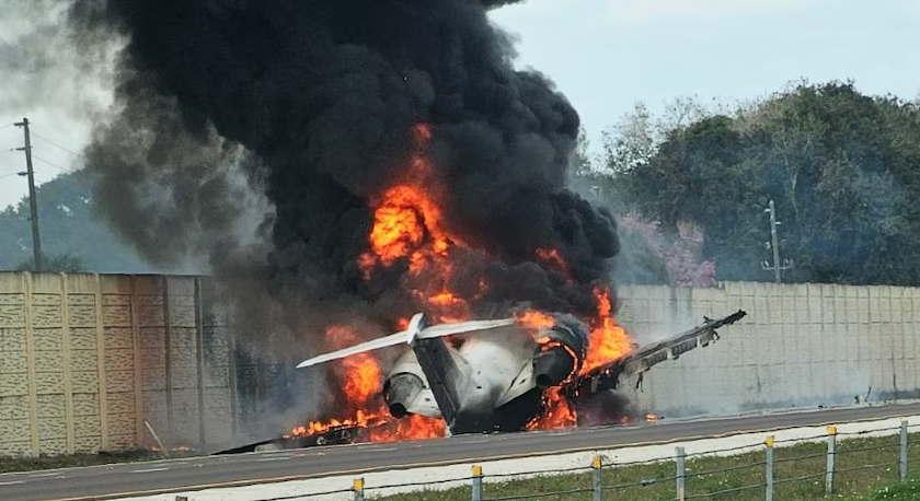The plane, a Bombardier Challenger 600, lost both engines just seconds before landing near Naples. The resulting crash caused a massive fireball and major traffic delays. Eyewitnesses and authorities report that the private jet, carrying five people in total, including the pilot, had received clearance to land but was unable to reach the airport. The desperate pilot made a distress call, informing air traffic control that both engines had failed. Within moments, the plane crashed onto the southbound lanes of I75, colliding with a vehicle and engulfing itself in flames.