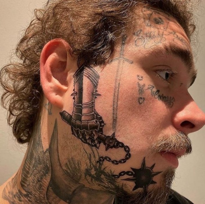 The medieval-inspired ink is on the side of Post’s face, next to a huge sword that spans the length of his face. TMZ recently caught up with Post to ask him about the tattoo, and he revealed that he has plans for more ink in 2020.