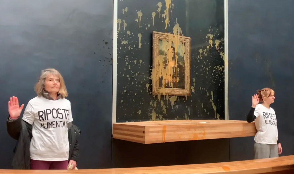 The Mona Lisa, Leonardo da Vinci’s renowned masterpiece, became the center of attention again as it was targeted by activists from the environmental group Riposte Alimentaire.