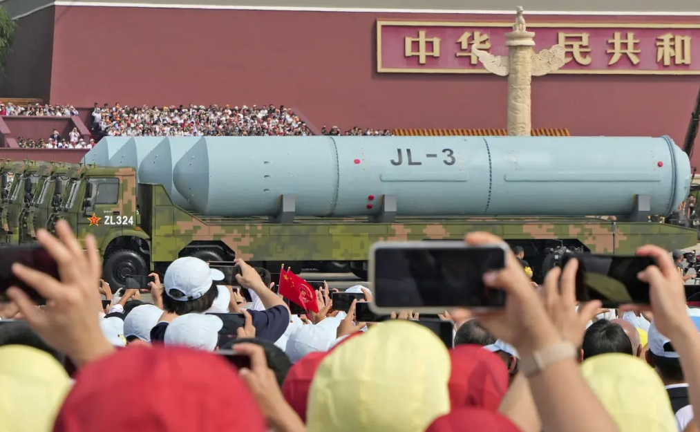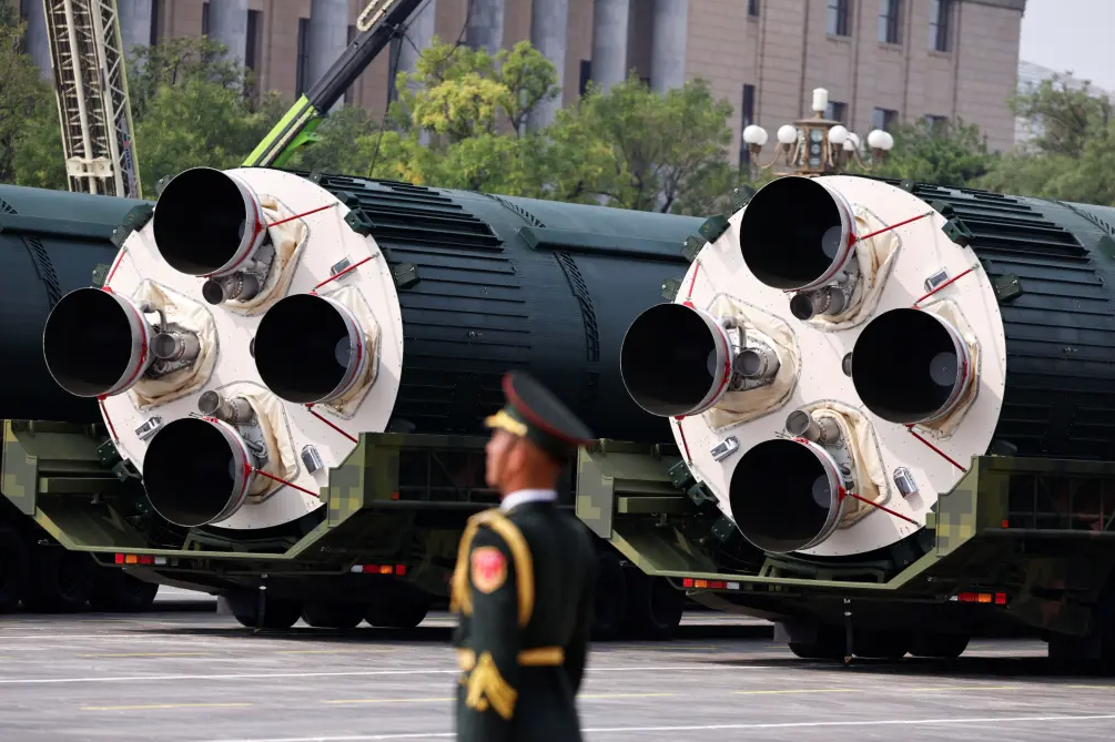 China unveils full land, sea and air nuclear triad for first time, weaponized ārobot wolvesā at largest-ever military parade.