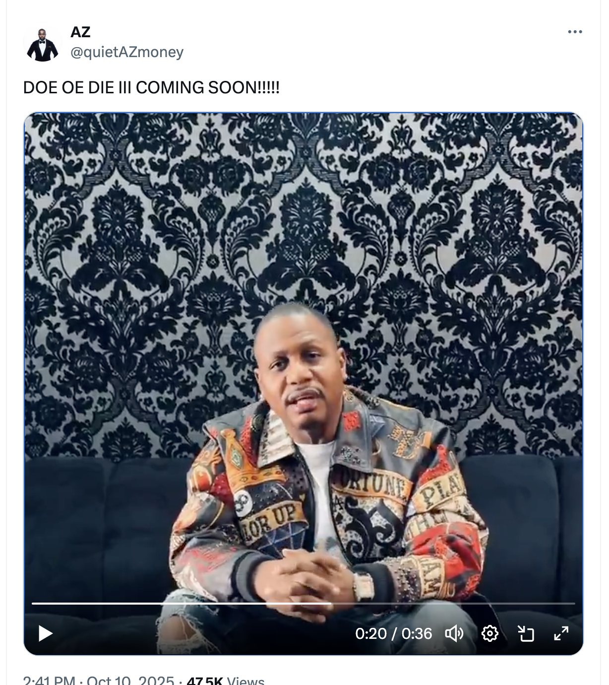 AZ stunned longtime Hip-Hop listeners on October 10 by announcing the upcoming release of Doe or Die III to celebrate the 30th anniversary of his 1995 debut.
