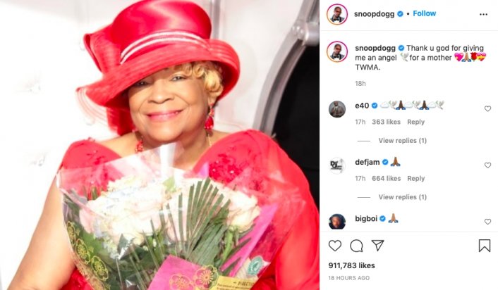 Along with that, the rapper has shown love for his daughter, who earlier this year revealed she was dealing with the possibility of suicide. Now, Snoop has revealed that his mother passed away. Via Instagram, Snoop showed love to his mother, posting photos of them together, with one of the captions saying: