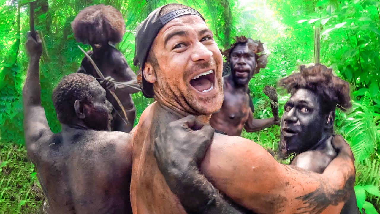 After Brodie and his crew docked their ship near the shore of the Island, the YouTuber headed inward towards a rocky plateau on the land, where he was immediately greeted by a group of the Island’s natives who appeared to be elated by his presence. The welcoming group of islanders took Brodie by the arms and rushed him through the tropical jungle toward their village as he gazed back at his cameraman repeatedly with a huge grin on his face.Â
